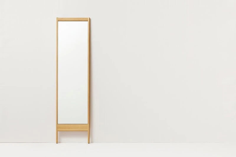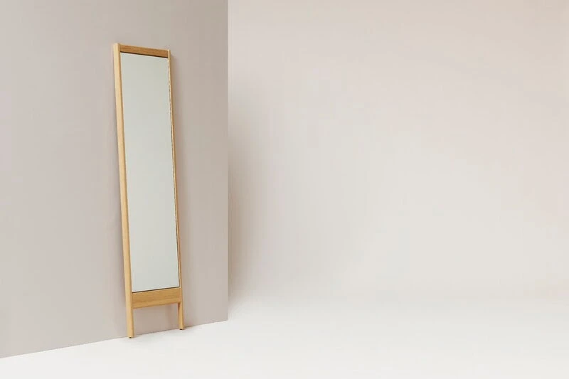Der A Line-Spiegel von Form & Refine hat einen schönen Eichenrahmen und zwei stabile Standfüße, die es ermöglichen, den Spiegel an die Wand zu stellen. Der schmale, rechteckige Ganzkörperspiegel kann als Ankleidespiegel im Flur oder z. B. im Schlafzimmer oder Wohnzimmer eingesetzt werden, um ein großzügiges Raumgefühl zu erzeugen.