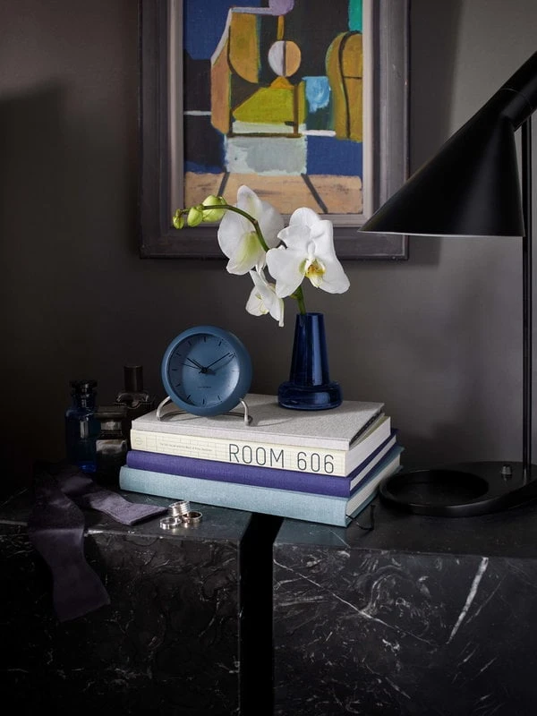 AJ City Hall Tischuhr Mit Wecker, Steinblau