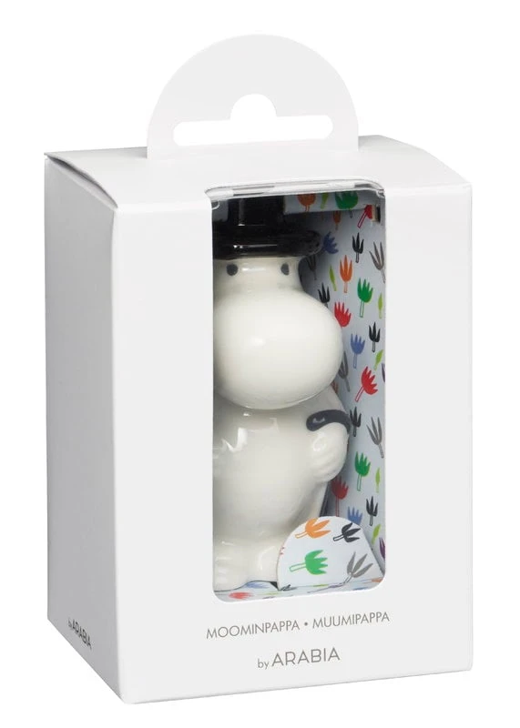 Die Muminpapa-Minifigur von Arabia ist Teil der Keramikkollektion, die die beliebten Mumin-Figuren von Tove Jansson darstellt. Der finnische Künstler Tuulikki Pietilä hat die Keramikfiguren in den 1990er Jahren entworfen und Arabia hat sie 2017 neu aufgelegt. Die Mumin-Minifiguren sind handgefertigte Sammlerstücke, die in hübschen Geschenkboxen geliefert werden.