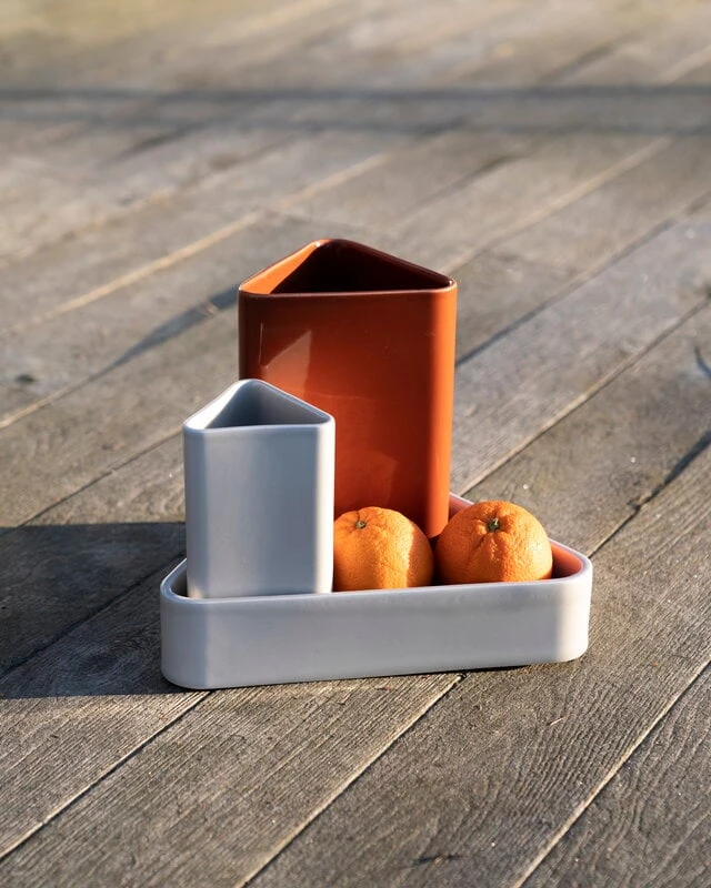 Raawii’s Canvas vase arouses curiosity with its exciting triangular shape. The charming vase can be used as a vase, a carafe, or a pen holder – the only limit is your creativity! The Canvas vase does not have a single predefined purpose, but rather allows room for experimentation and creativity. With its playful shape and bold colours, the Canvas collection can be mixed and matched in endless ways to create surprising compositions and new uses.