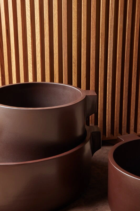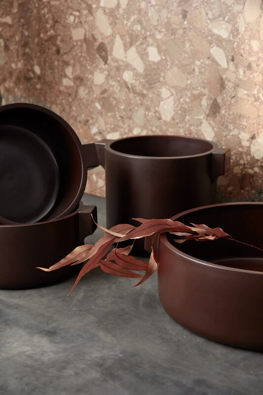 Die Ceramics-Kollektion von Fogia besteht aus Keramikgefäßen, die von Carina Seth Andersson entworfen wurden. Die Kollektion verbindet auf faszinierende Weise industrielle Fertigung und einzigartigen Ausdruck: Die Schalen werden in Italien aus mit Salz glasiertem Steinzeug handgefertigt – durch das Herstellungsverfahren ist der Braunton jeder einzelnen Schale einzigartig und wunderschön unterschiedlich.