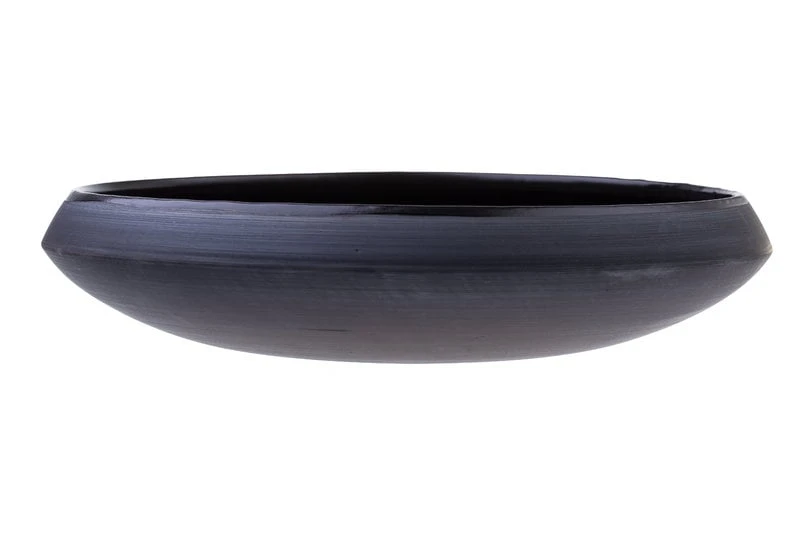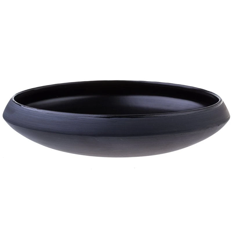 Die Tafelaufsatzschale Eclipse ist Teil einer Geschirrkollektion, die von Laima Grigone für das lettische Unternehmen Vaidava entworfen wurde. Das Eclipse-Keramikgeschirr wird in der im alten Rom entwickelten Terra-Sigillata-Technik hergestellt und ist innen mit einer bleifreien Glasur versehen. Die Serie Eclipse zeichnet sich durch klare, glatte Linien und eine tiefschwarze Farbe aus. Sie schafft ein beeindruckendes Tischbild, entweder allein oder in Kombination mit Geschirr in anderen Farben und Formen.