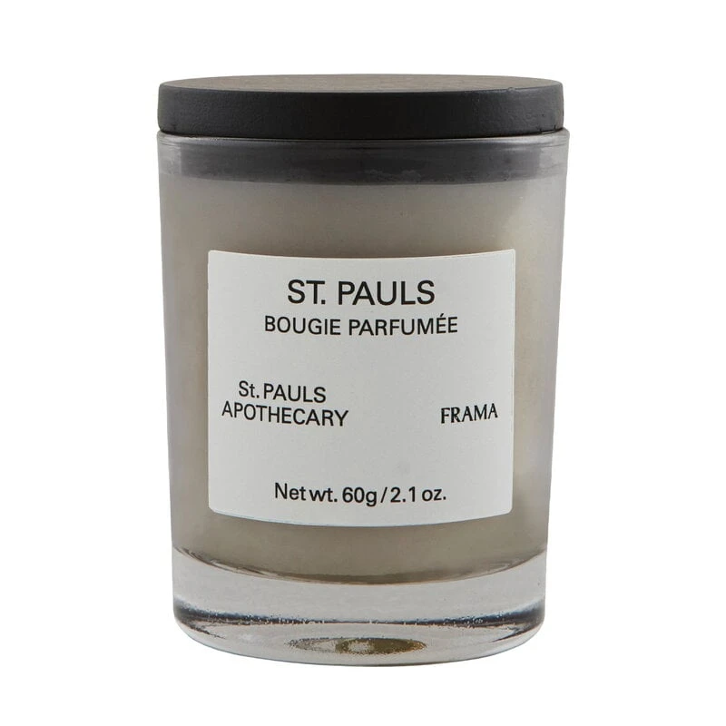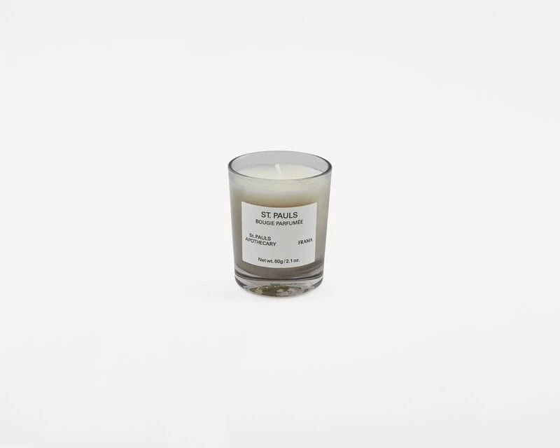 Die „St. Pauls“-Duftkerze von Frama ist vom Standort des Frama-Showrooms inspiriert. Es handelt sich dabei um ein historisches Gebäude, in dem früher eine Apotheke namens „St. Pauls Apotek“ untergebracht war. Der Duft fängt die Essenz der Marke treffend ein. Er ist frisch und komplex und gleichzeitig wunderbar nostalgisch und beruhigend. Der Duft ist eine erdige Mischung aus Kräutern, Gewürzen und Holz mit den Hauptnoten Zitronengras, Koriander, Mysore-Sandelholz und Zedernholz.