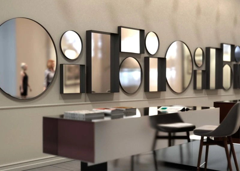 Der Spiegel Unu 4133 der dänischen Firma Frost ist von einem dünnen Metallrahmen umgeben. Die untere Kante des Rahmens kann auch als Ablage für Schmuck, Make-up und andere Kleinigkeiten genutzt werden. Die von Bønnelycke MDD entworfene Kollektion Unu zeichnet sich durch klare, grafische Linien und geometrische Formen aus. Aufgrund ihres minimalistischen Ausdrucks eignen sich die Unu-Spiegel perfekt für den Flur, das Bad sowie das Schlafzimmer und können auch zu Gruppen aus mehreren Spiegeln montiert werden.