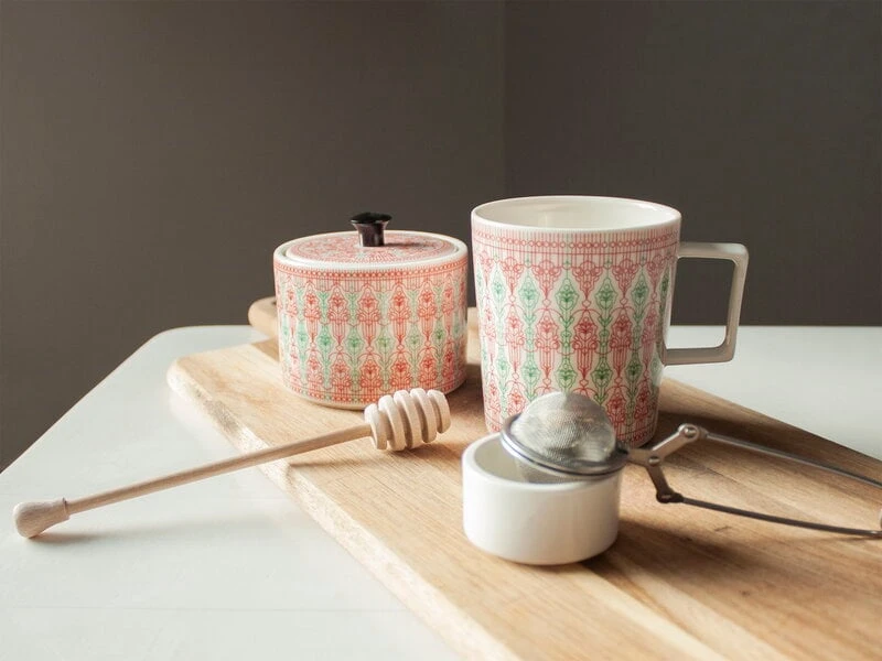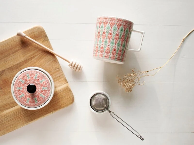 Das Sirkus-Geschirr von Vaja Finland ist mit Ornamentmustern in attraktiven Farbtönen verziert. Das Geschirr aus robustem, weißem Vitro-Porzellan wurde in Kleinserien in der eigenen Manufaktur von Vaja Finland in Porvoo entworfen und hergestellt. Die ruhige Lage der Manufaktur am Meer diente dem Designer Fred Owren als Inspiration für die frischen und klaren Formen des Geschirrs.