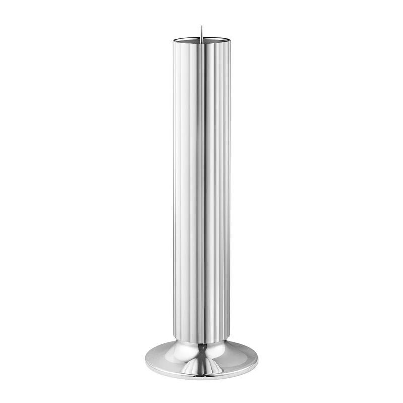 Der Bernadotte-Bodenkerzenständer von Georg Jensen verleiht Ihrer Einrichtung einen Hauch von Art-déco-Eleganz. Der robuste Bodenkerzenständer aus hochglanzpoliertem Edelstahl ist mit einem cleveren Dorn versehen, der die Kerze fest an Ort und Stelle hält.