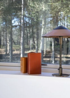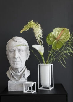 Die ikonische Lyngby-Vase wurde 1936 von Lyngby Porcelain eingeführt. Im Gegensatz zu den Porzellanobjekten der Zeit und unter dem Einfluss der Bauhaus-Bewegung weist die Vase ein einfaches, zylinderförmiges Design ohne üppige Ornamente, gemalte Verzierungen oder spezielle Glasurtechniken auf. Das schlichte vertikale Linienmuster verleiht dem Gefäß ein zeitloses und elegantes Aussehen. Die ursprünglich aus Porzellan gefertigte Vase ist jetzt auch aus Glas und in verschiedenen neuen Farben erhältlich. Die Echtheit jeder Lyngby-Vase wird durch ein schönes Monogramm auf dem Sockel garantiert.