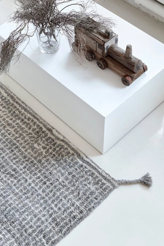 Der Grid-Teppich von Woodnotes ist eine Ode an die Handwerkskunst und natürliche Materialien. Der handgeknüpfte Teppich besteht aus 90 % Wolle und 10 % Baumwolle und wurde nicht chemisch behandelt (außer bei der schwarzen Version). Daher ist der Farbton des Teppichs erdig und authentisch und kann natürlich auch von Teppich zu Teppich variieren, was jeden Teppich zu einem Einzelstück macht.