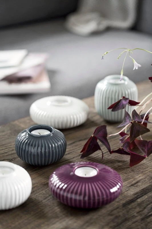Der von Hans-Christian Bauer für Kähler entworfene Teelichthalter Hammershøi ist Teil der schönen Keramik-Kollektion, die nach dem Künstler und Keramiker Svend Hammershøi benannt ist. Er arbeitete von 1893 bis zu seinem Tod für Kähler. Seine großen Vasen und Schalen waren oft mit einfachen vertikalen Furchen verziert. Dieses dekorative Muster wiederholt sich in der zeitlosen Hammershøi-Kollektion, die sich für den täglichen Gebrauch wie auch für festliche Anlässe eignet.