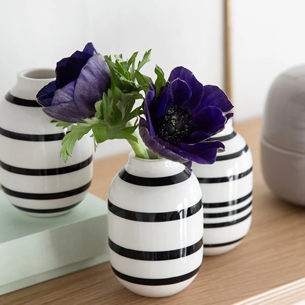 Die Omaggio-Vasen von Kähler sind Ditte Reckwegs und Jelena Schou Nordentofts Hommage an den Keramikkünstler Sven Hammershøi, dessen Markenzeichen horizontale und vertikale Zierlinien waren. Mit einem einfachen, zeitgenössischen Design und groben Pinselstrichen in einer Reihe von Farben präsentieren die Vasen eine einzigartige und mutige Interpretation seiner Keramikobjekte.