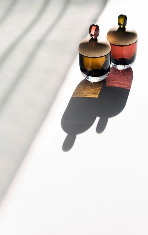 Die bezaubernden Lyyli-Gläser von Katriina Nuutinen vereinen die Traditionen der finnischen Glasbläserei und des Holzhandwerks zu einem spannenden, modernen Design. Das Aufbewahrungsglas besteht aus geblasenem und gefärbtem Glas und einem abgerundeten Holzdeckel – das i-Tüpfelchen ist ein kleiner Glasgriff in einer hübschen Farbe. Die Kombination aus hellem Birkenholz und glänzendem Glas ist hübsch und verspielt, und sie wirkt sogar noch niedlicher, wenn Sie mehrere Aufbewahrungsgläser miteinander kombinieren. Sie können die Aufbewahrungsgläser Lyyli, die einen Durchmesser von 6,5 cm haben, zur Aufbewahrung von Bonbons, Schreibzubehör, Klammern, Schmuck und anderen kleinen Schätzen verwenden.