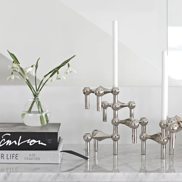 Die Packung enthält 12 weiße Spitzkerzen, die für die Kerzenhalter STOFF Nagel bestimmt sind.