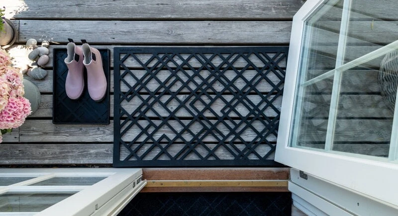 Die robuste Lines-Fußmatte von Tica Copenhagen ist eine schöne und praktische Ergänzung sowohl für den Flur als auch für den Außenbereich. Sie besteht aus dichtem Gummi und bleibt somit sicher an Ort und Stelle, und zwar auf allen Arten von Oberflächen. Zudem lässt sie sich mit dem Staubsauger reinigen. Alternativ können Sie sie auch vorsichtig abspülen.