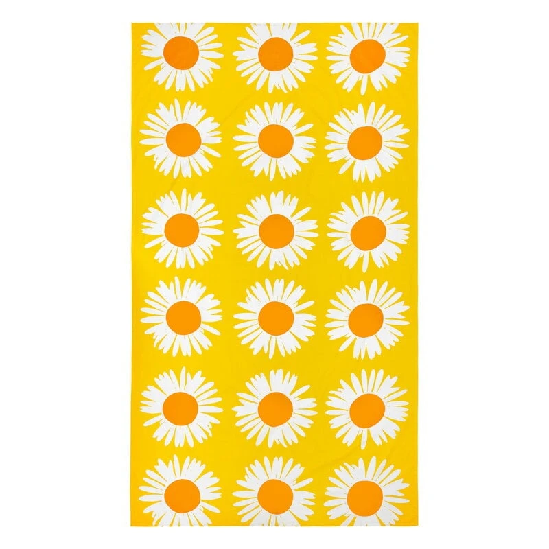 Diese Tischdecke von Marimekko ist mit dem fröhlichen Auringonkukka-Print verziert. Das ist das finnische Wort für „Sonnenblume“. Der von Maija Isola in den 1950er Jahren entworfene Motivdruck ist eines von Isolas zahlreichen Pflanzenmustern, die ihre tiefe und unerschütterliche Liebe zur Natur widerspiegeln.