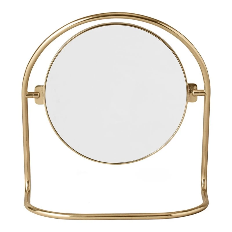 Der Nimbus-Tischspiegel, der von Krøyer Sætter-Lassen entworfen wurde, wurde auf der Grundlage der Idee des dänischen Designduos für einen gerahmten Spiegel geschaffen, dessen Rahmen nicht vom eigentlichen Spiegel ablenkt. Der schlichte und schöne Nimbus-Tischspiegel ist von einem zarten, heiligenscheinartigen Messingrahmen umgeben, der mit Scharnieren am schlanken Sockel befestigt ist. Der Name des Spiegels, Nimbus, wurde von der griechischen Mythologie inspiriert: Das Wort Nimbus bezog sich auf den leuchtenden Heiligenschein oder die Mandorla, die Gottheiten umgibt.