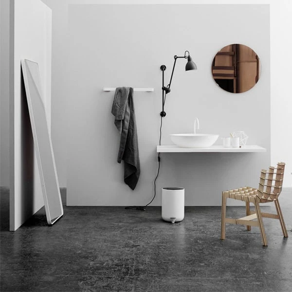 Der minimalistische Bodenspiegel Norm zeichnet sich durch ein für Norm Architects typisches Design aus. Das Ziel der Designer:innen ist es, die einfachste Lösung ohne funktionslose Details zu finden. Dennoch ist der Bodenspiegel Norm ein starkes Designobjekt mit feinen Details. Sie können ihn nach Lust und Laune entweder an die Wand hängen oder gegen die Wand lehnen.