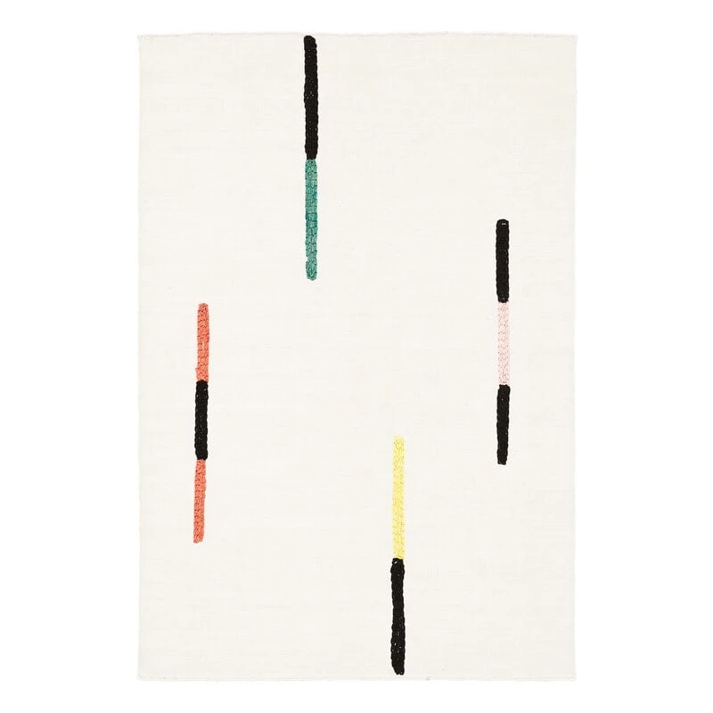 Der von Tomi Leppänen für MUM’s entworfene Näkymä-II-Teppich ist mit einem abstrakten Muster verziert, das auf typografischen Elementen basiert. Der Teppich ist Teil der Typewriter-Kollektion von Leppänen und ist vom Bauhaus und insbesondere von der Arbeit der Textildesignerin Anni Albers inspiriert, die in den 1930er Jahren damit experimentierte, ihre Schreibmaschine zur Erzeugung von Mustern zu verwenden. Das bunte Muster von Näkymä (finnisch für „Aussicht“) besteht ebenfalls aus den Punkten und Strichen einer Schreibmaschine.