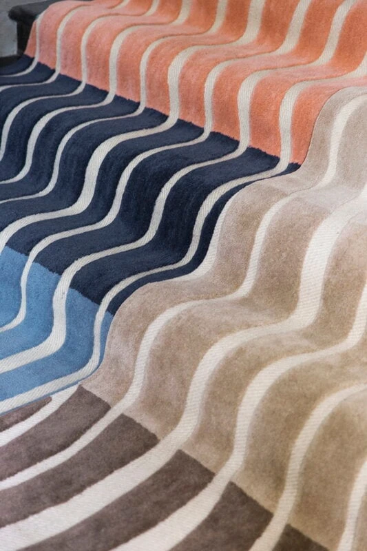 Der Nami-Wollteppich von Finarte ist mit einem sanft fließenden Wellenmuster verziert, das von Eri Shimatsuka entworfen wurde. Nami ist das japanische Wort für Welle und das finnische Wort für Süßigkeit. Aus Wolle getuftet, zieht sich das dreidimensionale Muster in vier harmonischen Tönen durch den Teppich, und ein weißer Baumwolluntergrund ergänzt die frische Haptik. Der Teppich Nami schafft ein lebendiges und doch ruhiges Ambiente, zum Beispiel in einem Wohn- oder Schlafzimmer.