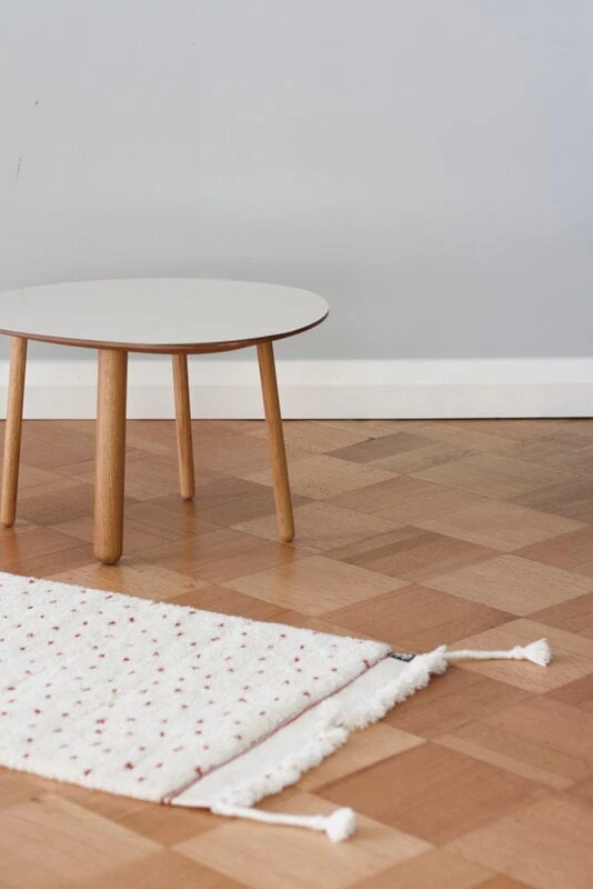 Der handgewebte Raindrop-Teppich von Tikau weist ein fröhliches Punktmuster auf, das ausschließlich unter Verwendung von Farbstoffen auf Pflanzenbasis kreiert wurde. Der Raindrop-Teppich aus Wolle beeindruckt mit lockeren Fransen und verleiht Ihrer Einrichtung ein sanftes und fröhliches Ambiente – und er fühlt sich noch weicher an, als er aussieht! Der aus natürlicher Wolle hergestellte Teppich hat eine schützende Lanolinschicht, weshalb er perfekt für alle Räume geeignet ist, einschließlich Flur und Badezimmer. Der Raindrop-Teppich würde auch an der Wand aufgehängt umwerfend aussehen.