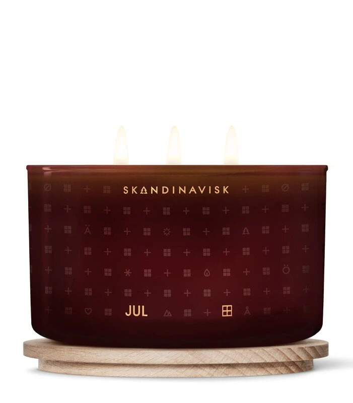 Die Jul-Duftkerze von Skandinavisk erfüllt den Raum mit skandinavischen Weihnachtsdüften: Lebkuchen, Gewürznelken und -orangen und Glühwein. Die Kerze ist besonders gut geeignet, um die dunkelste Jahreszeit zu erhellen, begeistert Weihnachtsfans allerdings garantiert zu jeder Jahreszeit! Die 3-Docht-Kerze wird in einer schönen Geschenkbox geliefert, hat einen Holzdeckel und eine Brenndauer von etwa 40 Stunden.