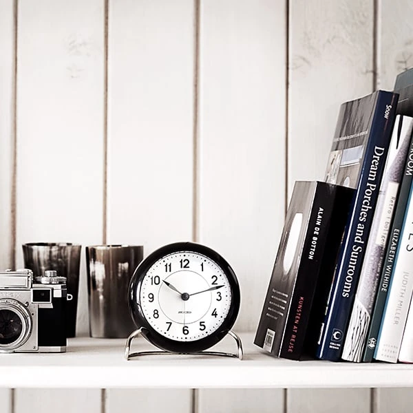 Der Wecker AJ Station ist eine aktualisierte Version der eleganten Tischuhr, die Arne Jacobsen 1939 entworfen hat. Neben dem grafischen Zifferblatt, das Arne Jacobsen 1941 für den dänischen Elektrohersteller Lauritz Knudsen gezeichnet hat, und dem schlichten Metallfuß, der auf die ikonischen Stuhlentwürfe des Designers verweist, verfügt die Uhr über neue Funktionen wie Schlummertaste und Lichtsensor. Der Wecker AJ Station ist eine tolle Geschenkidee und eine stilvolle Ergänzung für jeden Nachttisch.