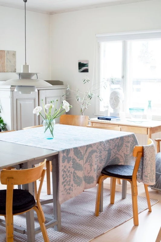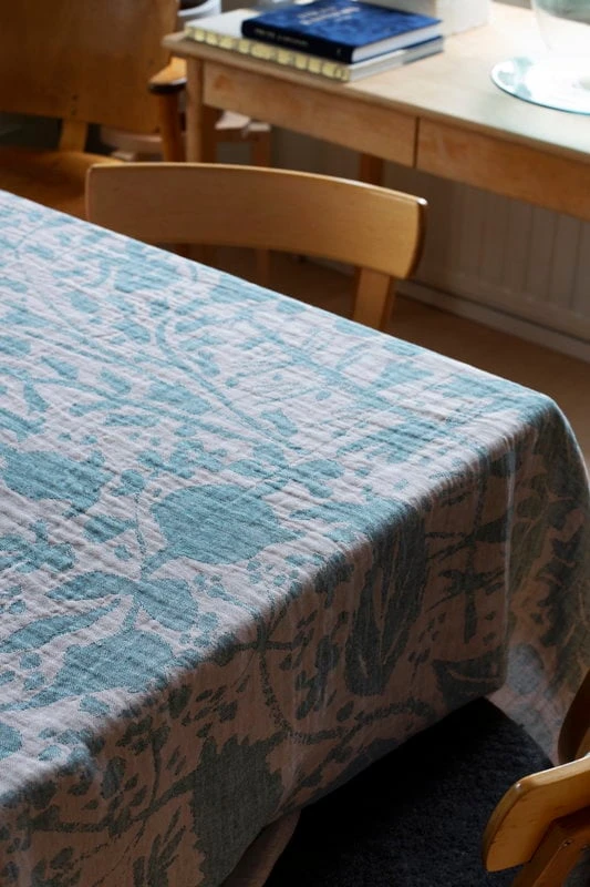 Die Villiyrtit-Tischdecke, die von Matti Pikkujämsä für Lapuan Kankurit entworfen wurde, ist mit einem reichen, fließenden Muster verziert, das die Feinheiten der finnischen Natur zeigt. „Villiyrtit“ ist das finnische Wort für Wildkräuter. Das Muster ist auf der anderen Seite in entgegengesetzten Farben gespiegelt. Die multifunktionale Leinendecke rundet als Tischdecke jedes Tischgedeck ab, eignet sich aber auch als dünne Decke im Sommer, als Gardine vor dem Fenster oder als Picknickdecke im Park. Die Tischdecke wird in Finnland in Lapuan Kankurits eigener Weberei hergestellt.