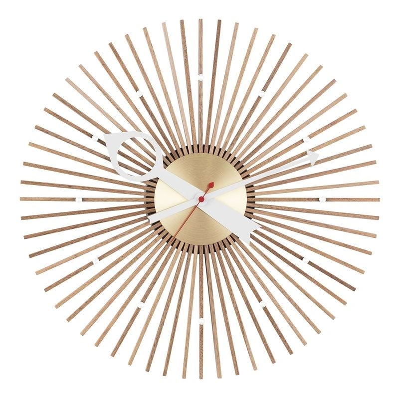 Zwischen den Jahren 1948 und 1960 entwarf das Büro von George Nelson über 150 Uhren für den amerikanischen Uhrenhersteller Howard Miller. Die Kollektion besteht aus Wand- und Tischuhren, die sich durch fantasievolle Formen, einen modernen Touch und das Fehlen von Zahlen auszeichnen. Nelson hatte es sich zum Ziel gesetzt, modernes Design in gewöhnliche amerikanische Häuser zu bringen – und das gelang ihm auf brillante Weise! Die Uhren werden heute als internationale Designklassiker und Meisterwerke des amerikanischen Designs der Mitte des Jahrhunderts geschätzt.
